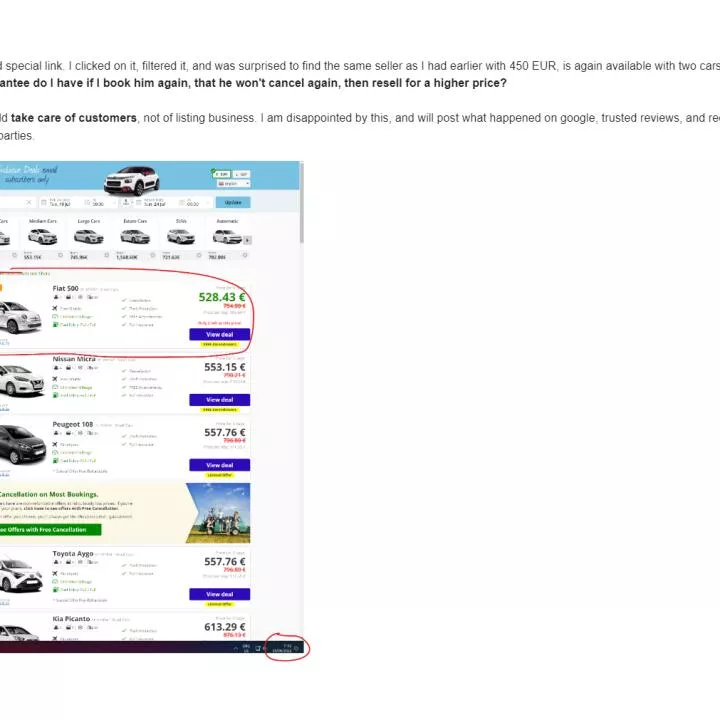 Booked, paid and waited my holiday. A few days prior to my holiday I receive an email telling me that my booking was canceled due to no availability of cars. I was refunded. No problem so far. Searched again, same period, same car, found same supplier, but with a higher price. So... it wasn't car availability, but the renter canceled my booking to sell for a higher price.