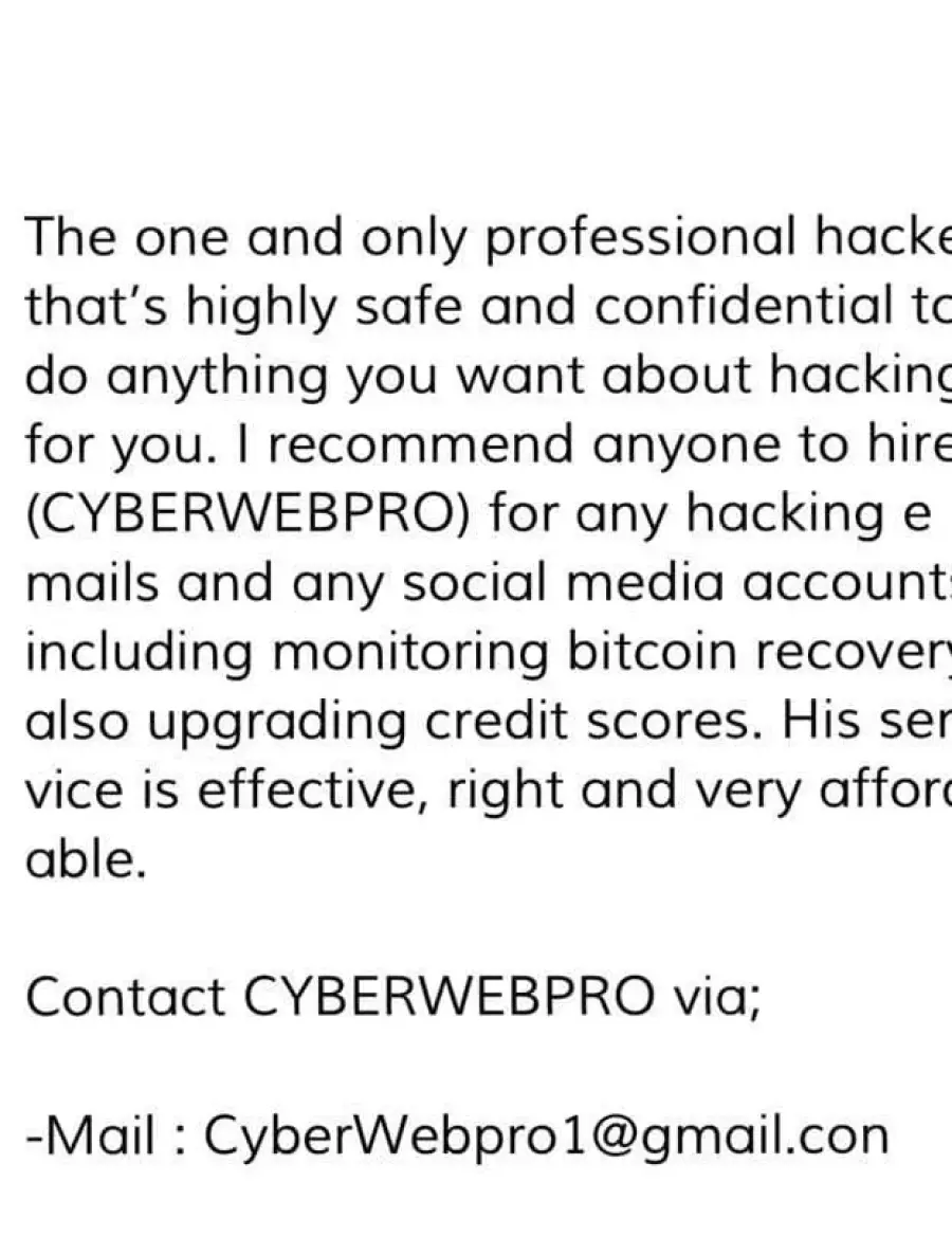 The Orbithack team has been an outstanding hack company which offers tracking services to catch your suspected cheating spouse and to my surprise, they justified all my suspicions. Many thanks to Tim, it's never a regret using the services of WWW. ORBITHACK. COM